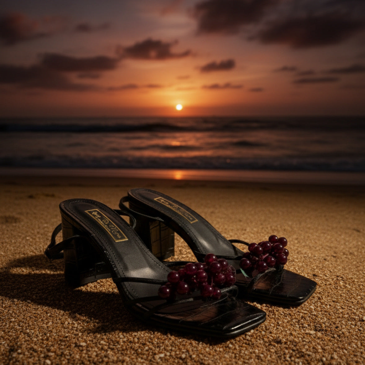 • Toque de Seducción Otoñal: El detalle central son unos pequeños y sutiles racimos de uvas artificiales en tonos profundos, meticulosamente colocados en en frente del diseño  como un adorno discreto en la puntera. Este toque simboliza la vendimia y añade un encanto único y temático.